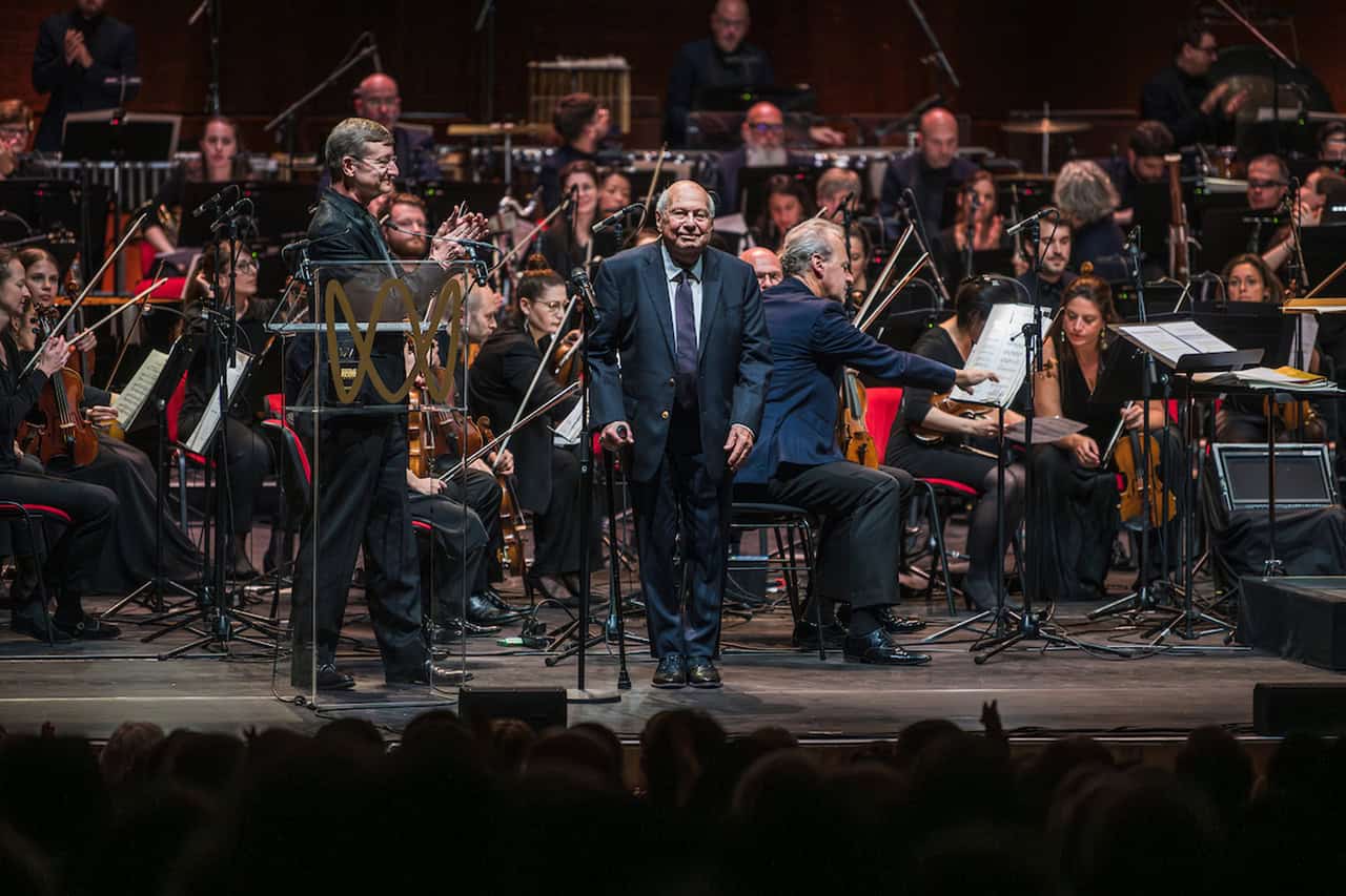 (photo G18a) Sara Andon, Krzysztof Penderecki, Robert Townson. Penderecki Concert Hall, Krakow. 2018